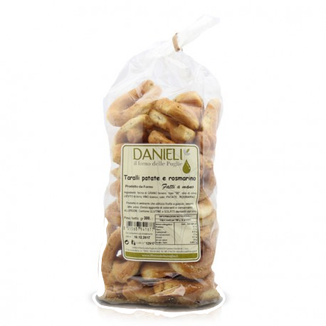 TARALLI PATATE E ROSMARINO, rigorosamente prodotti a mano come da antiche tradizioni.