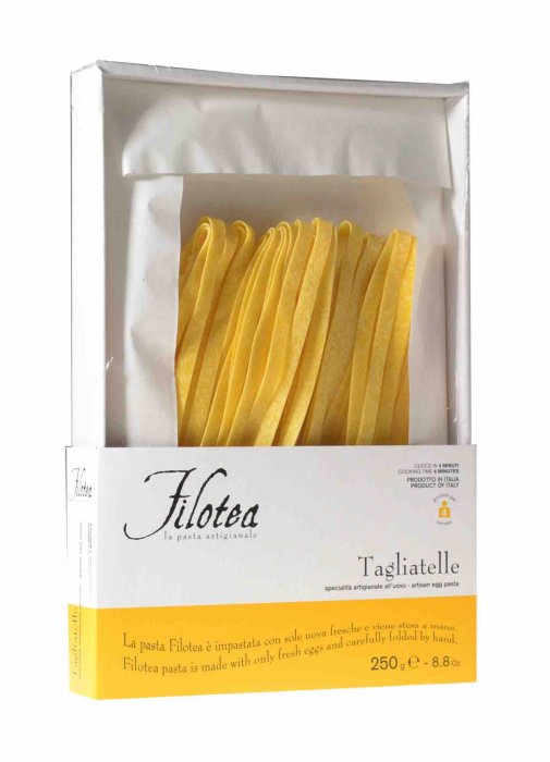 Le Tagliatelle sono il classico formato di pasta realizzato dalle nostre nonne in casa per il pranzo domenicale. Filotea, riprendendo la ricetta tradizionale marchigiana ed utilizzando solo materie prime italiane, confeziona questo formato dedicando massima cura ed attenzione ad ogni fase del processo produttivo.