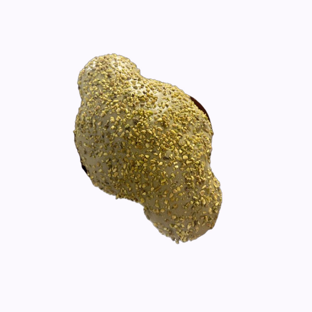 Farina di frumento, fragoline e cubetti di Cremino al Pistacchio, burro, zucchero, tuorli d’uova fresche, lievito madre naturale, pasta d’arancia, miele malto, sale, vaniglia naturale Madagascar. La colomba, come deve essere.
