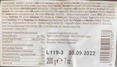 INGREDIENTS: milk chocolate (sugar, cocoa butter, whole milk powder, cocoa mass. Emulsifier: soy lecithin. Natural vanilla flavor. Cocoa min. 32%), extra dark chocolate (sugar, cocoa mass, cocoa butter. Emulsifier: soy lecithin. Natural vanilla flavoring, cocoa min. 52%), hazelnuts 32% (chopped 17%, paste 15%), cocoa powder, sugar. May contain traces of other nuts. Gluten-free.