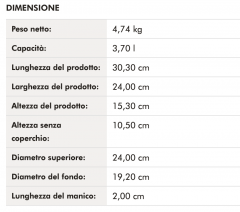 - Adatta a tutti i tipi di piano cottura, inclusa l'induzione, può essere messa anche nel forno/grill