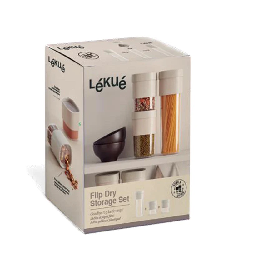 Il set è composto da 3 barattoli da cucina, 1 grande L e 2 medi M, oltre al kit inserti, shaker e dispenser. Scoprite un nuovo modo di conservare alimenti con il set barattoli da cucina FLIP - i barattoli con volume regolabile offrono infinite possibilità. Il corpo trasparente permette una visione diretta del contenuto, anche nel cassetto. La sua forma ergonomica si adatta perfettamenta alla mano. Grazie all'accessorio flip (manicotto) potete ottenere 250 ml di volume extra quando ne avete bisogno, semplicemente capovolgendo il manicotto. I barattoli sono lavabili in lavastoviglie e privi di BPA.