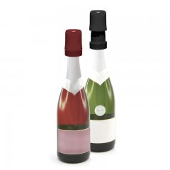 Tappo e pompetta due in uno che mantiene la pressione e l’effervescenza delle bollicine e che conserva il sapore dopo che si è aperta la bottiglia. Chiudere: mettere il tappo sulla bottiglia e spingere con forza per inserire la parte di gomma nella bottiglia. Contemporanea-mente ruotare la parte girevole e fissarla al punto di chiusura. Aprire: mettere la mano sopra il tappo al fine di evitarne l’espulsione e con l’altra mano ruotare la parte girevole fino alla posizione di apertura.