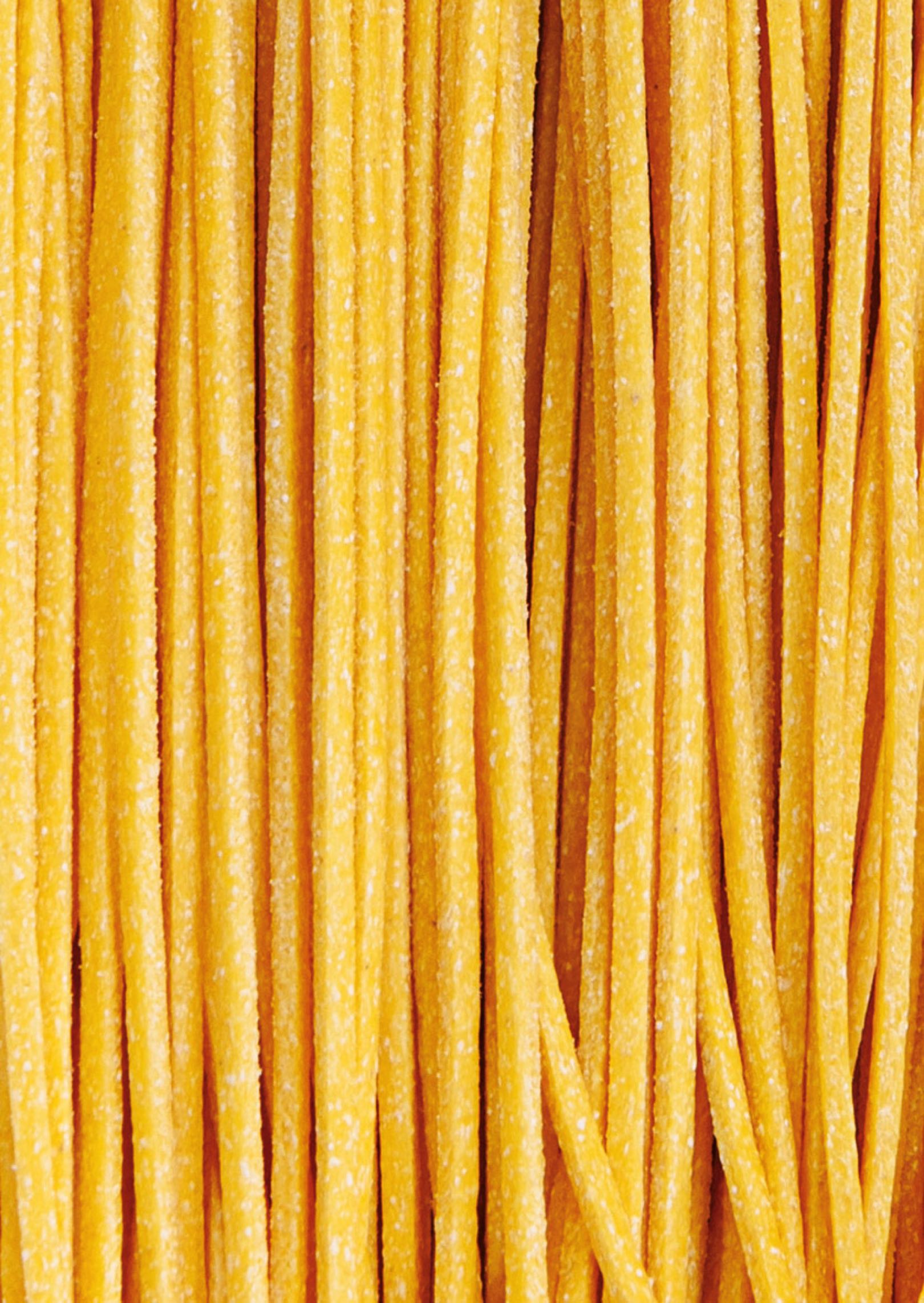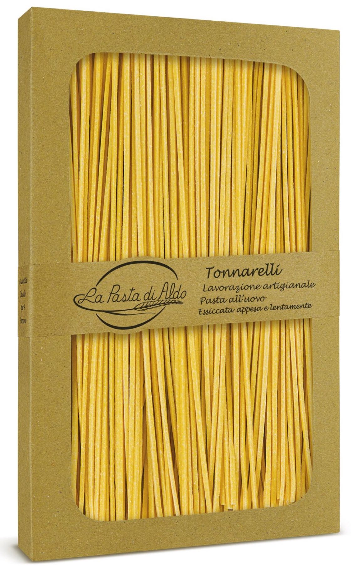 La Pasta di Aldo ha interpretato il TONNARELLO, un formato di pasta all’uovo diffuso nella tradizione della cucina romana. Il nostro Tonnarello è magnificamente poroso e cuoce in 8/ 10 minuti! Speciale con cacio e pepe, l’accostamento ideale per apprezzarne la piena corposità.