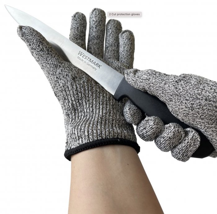 Guanti taglia 8 (L) - resistenza al taglio di alto livello, livello di protezione al taglio 5 (secondo EN 388-2019) - sicuro per gli alimenti - ideale per tagliare, intagliare, sbucciare o grattugiare gli alimenti - protegge dalle lesioni - elevato comfort di utilizzo, buona vestibilità - in fibre sintetiche ad alta resistenza - lavabile a 30° C|
