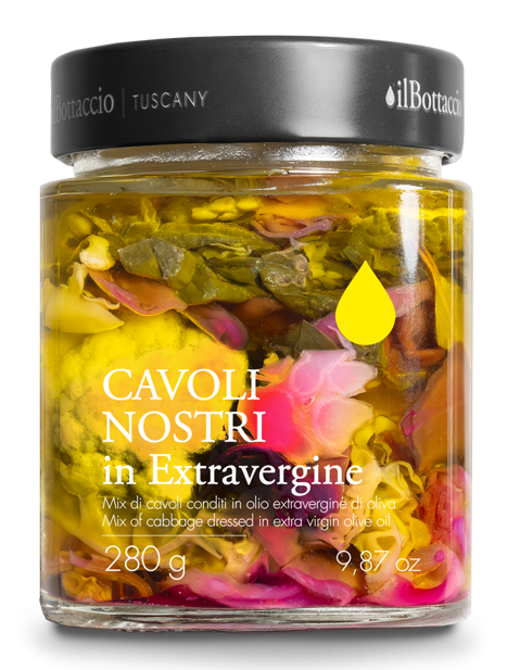 Un assortimento di cavoli misti, conservati in pregiato olio extravergine di oliva, per un sapore ricco e avvolgente. Un prodotto raffinato e versatile, disponibile in vasetto da 280 gr.