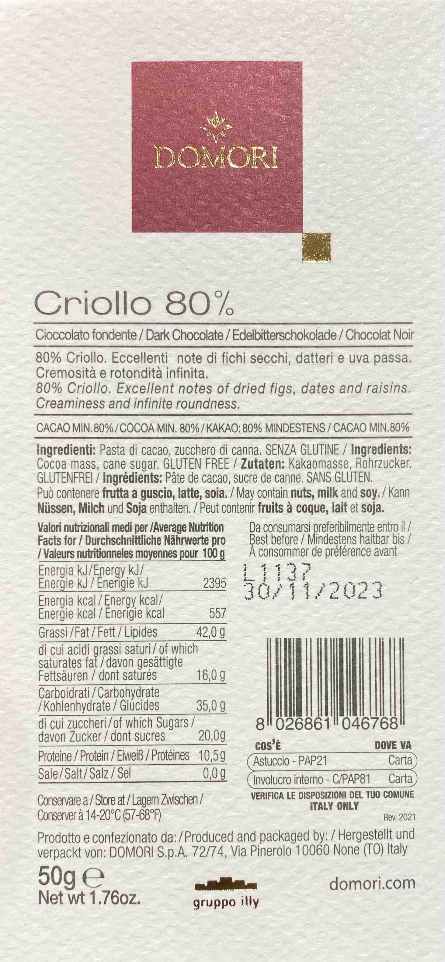 TAVOLETTA CIOCCOLATO BLEND CRIOLLO 80% 50 GR