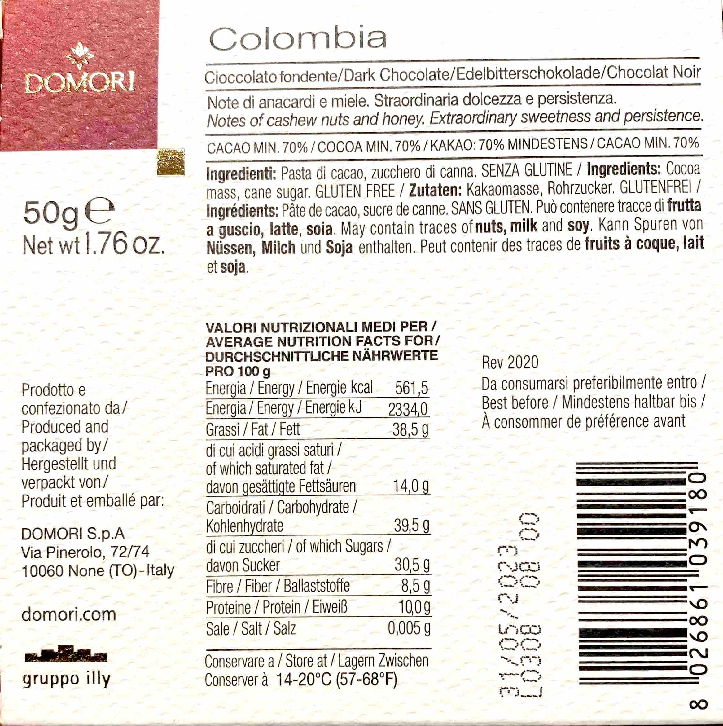 Tavoletta di cioccolato fondente cacao min. 70% (provenienza Colombia)